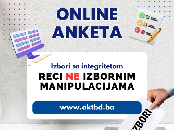 Pozivamo vas da sudjelujete u anketi koju provodimo kako bismo zajedno unaprijedili kvalitetu izbornog procesa u Brčko distriktu BiH. Vaše mišljenje nam je izuzetno važno i može značajno doprinijeti borbi protiv izbornih manipulacija.
